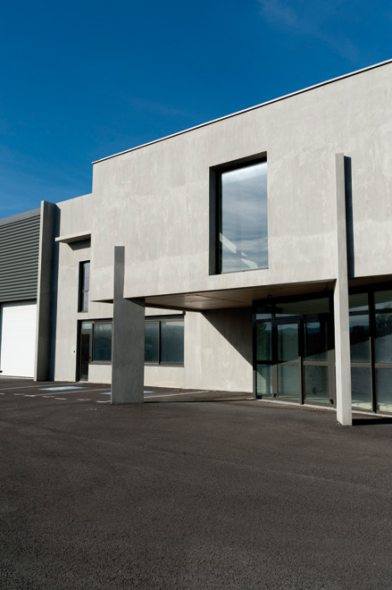 Le projet concerne la construction d'un bâtiment à caractère industriel regroupant des volumes de stockages et des unités de bureaux. Les espaces techniques sont traités par du bardage métallique et les bureaux en béton brut afin que chaque fonction soit clairement identifiable. Les volumes regroupant l'entrée et les circulations verticales apportent une animation sur la façade principale, évènement qui invite le visiteur sur l'unique entrée.