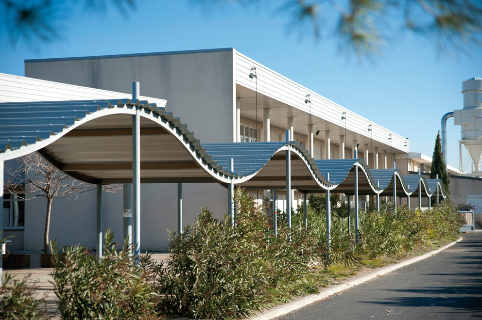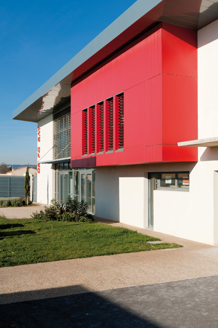Le projet est de facture contemporaine avec sa façade Sud volontairement ouverte et transparente pour mettre en avant le savoir faire du monde de l'apprentissage. Les débords de toitures sont complétés par des filtres verticaux sur les parois vitrées, composition qui offre un confort d'utilisation dans les espaces intérieurs. La vêture en saillie s'affirme par la combinaison matière/couleur et donne à cet ensemble une identité tout en apportant un signal sur l'entrée générale du centre de formation.